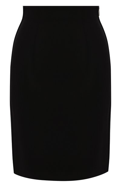 У черной юбки длиной чуть выше колена есть много возможностей в гардеробе. А модель из весенне-летней коллекции еще и почти не мнется. Ее сшили из плотной матовой ткани. Акцент на высокой посадке сформировали с помощью скрытого пояса и вытачек. Изделие застегивается сбоку короткой молнией.