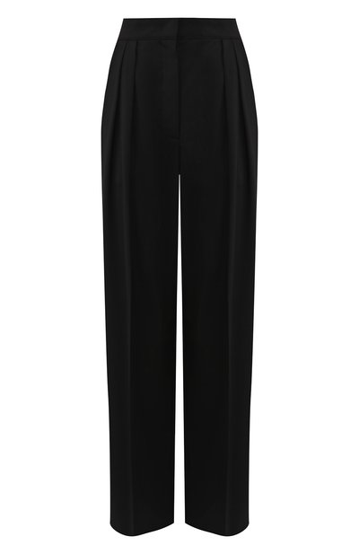 Черные брюки не обязательно должны быть классического кроя. Выйти из зоны комфорта помогут слегка укороченный силуэт и глубокие защипы на поясе. Для создания модели из весенне-летней коллекции мастера марки использовали тонкую мягкую шерсть. Чтобы изделие хорошо держало форму и не пилинговалось, в состав ткани включили прочные нейлоновые волокна и эластан.