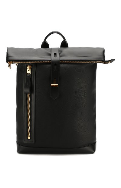 Черный рюкзак сочетает в себе эстетичность и функционал. По вместительности он может конкурировать с небольшими туристическими моделями: внутрь поместятся ноутбук, кошелек и бумаги формата А4. Мягкая цилиндрическая форма и откидной клапан, дополненный ремешком с прорезями, позволяют регулировать объем изделия. Том Форд выбрал для создания аксессуара из осенне-зимней коллекции гладкую и зернистую кожу.