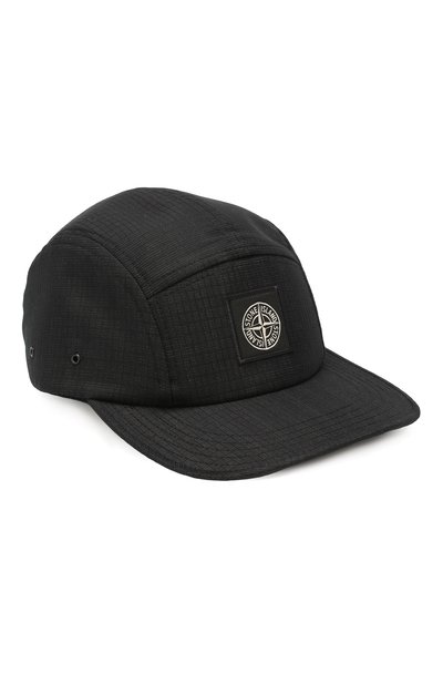 Черная бейсболка с жестким козырьком сшита из фактурного материала со светоотражающим эффектом. Материал пропитан смолами с тысячами стеклянных микросфер, а покрытие на изнанке позволяет аксессуару долго сохранять первоначальную форму. По бокам ‒ люверсы, спереди ‒ патч с эмблемой бренда.
