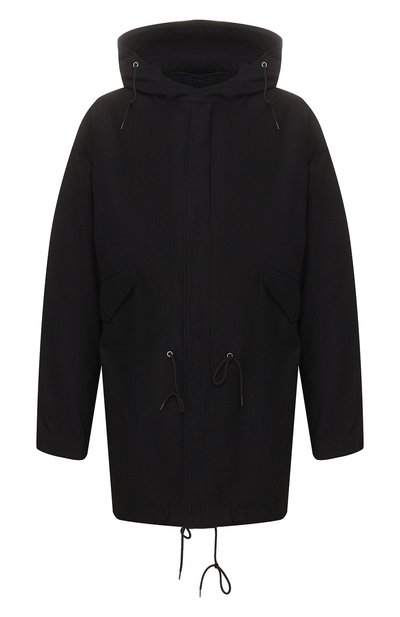 Одну из ключевых ролей в коллекции сезона осень-зима Раф Симонс отдал одежде с красным принтом, в котором сочетал название песни группы Talking Heads «Burning Down The House», логотип и фразу, символизирующую бельгийское происхождение дизайнера. Есть такая и на черной парке (здесь мотив разместили сзади). Модель с внутренним поясом-кулиской сшили из плотного хлопка с добавлением нейлона.