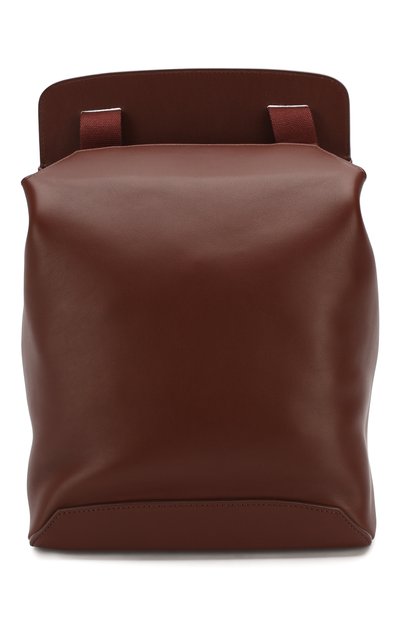 Небольшой рюкзак Moulded из осенне-зимней коллекции – в одинаковой степени практичный и модный аксессуар. Для создания модели цвета горького шоколада сестры Олсен выбрали мягкую гладкую кожу с легким блеском. В основное отделение с подкладкой из прочной замши поместятся смартфон, складной зон и кошелек. Изделие закрывается откидным клапаном, сквозь который продеты широкие текстильные лямки в тон.