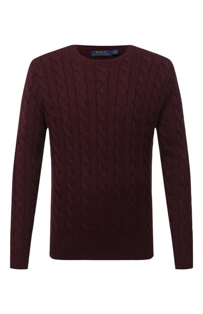С помощью глубокого оттенка марсалы дизайнеры марки, основанной Ральфом Лореном, расширили цветовую палитру знаковых джемперов с арановым узором. Модель из мягкого хлопка хорошо пропу скает воздух, поэтому в ней будет комфортно в течение дня. Изделие из осенне-зимней коллекции 2020 года по традиции украсили вышитым игроком в поло: мастер бренда сделал около 1000 стежков вручную синей нитью.