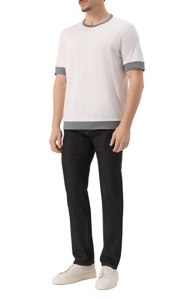 Мастера бренда, основанного Брунелло Кучинелли, сшили желтую футболку из мягкого хлопкового джерси. Благодаря такому легкому материалу, который позволяет коже дышать, и свободному силуэту, не сковываю щему движения, в модели будет комфортно в течение всего дня. Изделие с узкими белыми полосками на серых манжетах и вставке вдоль круглого выреза вошло в коллекцию сезона весна-лето.