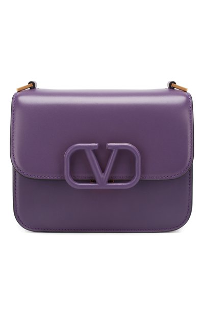 Сумка VSling из весенне-летней коллекции бренда, основанного Валентино Гаравани, привлекает внимание насыщенным фиалковым оттенком. Он выглядит еще глубже благодаря гладкой коже с легким блеском, из которой сшили аксессуар. Этим же материалом обтянули крупную пряжку в виде логотипа марки. Пьерпаоло Пиччоли дополнил изделие золотистой цепочкой (с ее помощью удобно регулировать длину плечевого ремня).