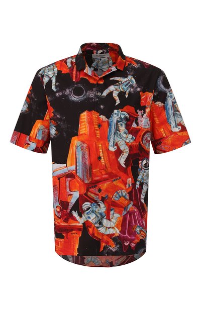 На ключевой мотивов весенне-летней коллекции марки, основанной Валентино Гаравани, навеяла научная фантастика. Поэтому, на этой рубашке, похожей на гавайскую, появились не привычный цветы, сюжетный принт на тему космических приключений. В качестве фона для зарисовок Пьерпаоло Пиччоли выбрал плотный гладкий хлопок. В образе яркий темперамент изделия поддержат кроссовки, а оттеняют — белая футболка и однотонные брюки.