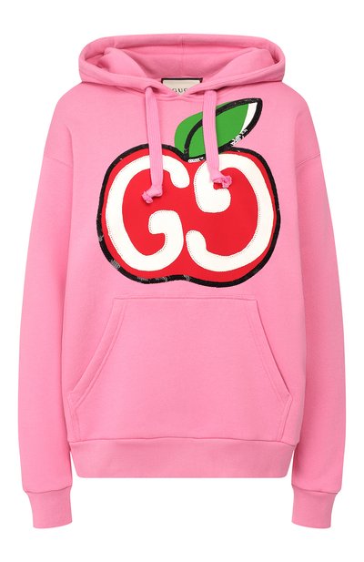 В худи из весенне-летней коллекции не выйдет затеряться в толпе. Дело не только в сочном розовом оттенке мягкого хлопкового футера, который Алессандро Микеле выбрал для пошива прямой модели. Ярким акцентом в образе станет белоснежная монограмма, составленная из инициалов Гуччио Гуччи, подчеркнутая вышивкой из эффектно мерцающих стразов.