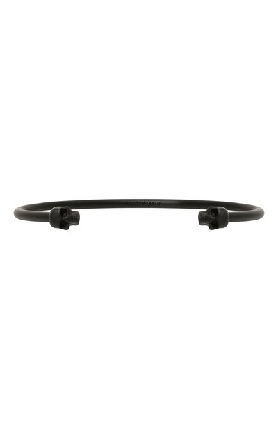 Черный браслет Сара Бертон сделала максимально лаконичным: разомкнутые концы узкого цилиндрического основания венчают миниатюрные изображения знаковых черепов. Поддержать тему минимализма помогло матовое гальваническое напыление. Оно же защищает аксессуар из легкого металла от царапин и сколов. Предлагаем носить изделие с футболкой и джинсами (чтобы casual-образ не выгл ядел простым).