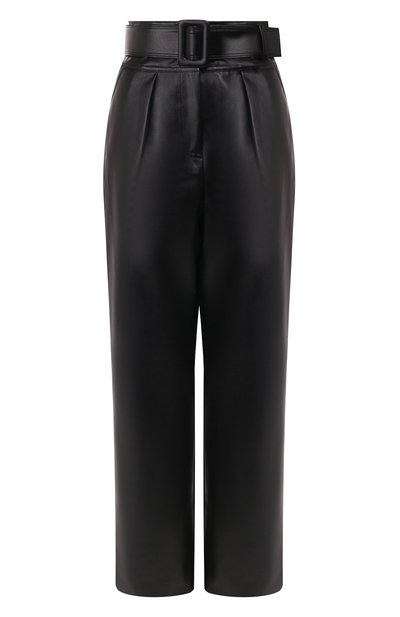 В сезоне весна-лето черные укороченные брюки вывели на новый уровень за счет материала. Кажется, будто вещь выполнили из тонкой гладкой кожи с матовым блеском. Завышенная посадка и широкий пояс акцентируют внимание на талии, а защипы спереди формируют мягкие складки.