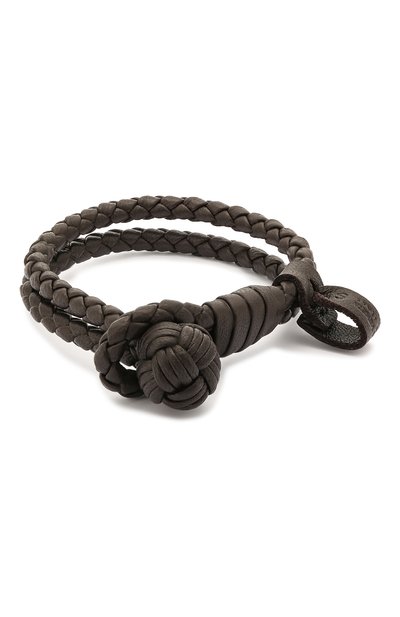 Наследие марки, тесно связанное со старинными ремесленными традициями, нашло отражение и в этом гибком браслете цвета горького шоколада. Аксессуар с крупным узлом выполнен вручную из узких полос мягкой матовой кожи в технике intrecciato.