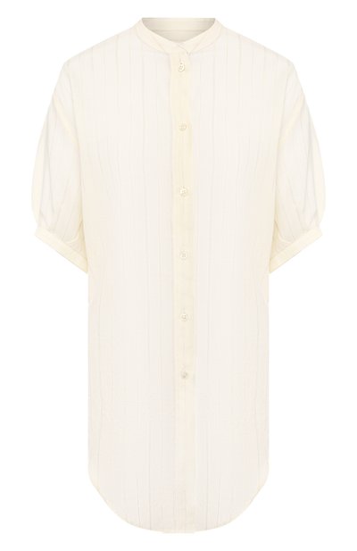 Наши стилисты предлагают разнообразить повседневный гардероб и включить в него белую рубашку из весенне-летней коллекции бренда, основанного Ивом Сен-Лораном. Короткие объемные рукава, асимметричный низ и блестящий полосатый узор вывели вещь на новый уровень, переведя ее из классической одежды в разряд must have. Для создания модели использовали особенно тонкую и легкую шерсть.