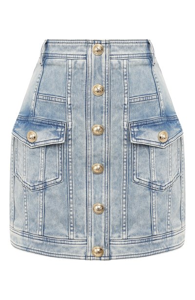 Изделия бренда, основанного Пьером Бальманом, легко узнать по крупным золотистым пуговицам. Ими украсили и короткую юбку из весенне-летней коллекции. Для изготовления модели Оливье Рустен выбрал мягкий эластичный хлопок: материал предварительно обработали, чтобы придать вещи легкий состаренный эффект.