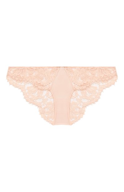 Светло-розовые трусы едва ощущаются на теле. Все дело в полупрозрачном цветочном кружеве Leavers. В состав материала входит эластан, поэтому изделие плотно прилегает к телу, но при этом не стесняет движения. Также за счет них белье не потеряет форму после частых стирок. Для удобства предусмотрели ластовицу из гипоаллергенного хлопка.