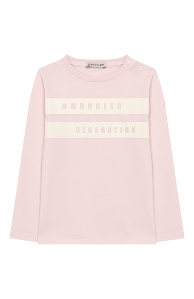 Мастера марки выполнили нежно-розовый лонгслив с крупным принтом Moncler Generation из мягкого гипоаллергенного хлопка. Благодаря тонким эластановым волокнам в составе материала изделие комфортно облегает фигуру, а пуговицы на плечевом шве позволяют легко надевать и снимать вещь.