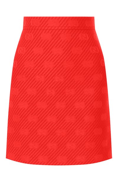 Основой рельефного жаккардового паттерна на ярко-красной мини-юбке из круизной коллекции стала GG-монограмма, составленная из инициалов Гуччио Гуччи. Традиционно этот элемент вписывают в ромбовый узор, но на модели из мягкой шерстяной ткани с добавлением гладкого шелка его объединили с графичными диагональными полосками в тон.