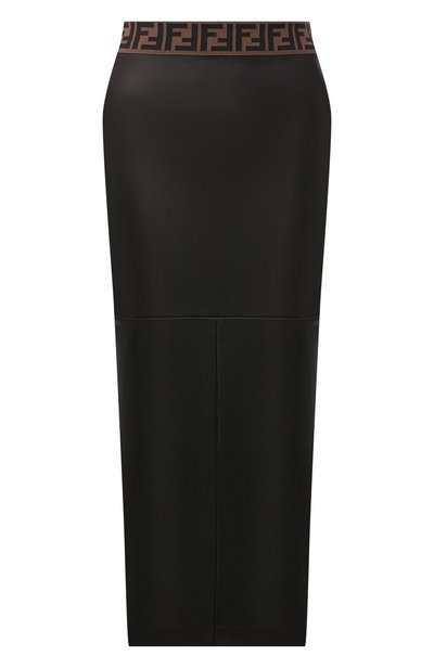 Черная миди-юбка из весенне-летней коллекции держится на контрасте фактур. Мягкая тонкая кожа ягненка с матовым блеском смотрится еще эффектнее в сочетании с брендированным текстильным поясом (он подчеркивает талию). Чтобы модель садилась точно по фигуре, мастера марки, основанной супругами Фенди, сшили ее из нескольких крупных отрезов, а чтобы не стесняла движения — сделали разрез сзади.