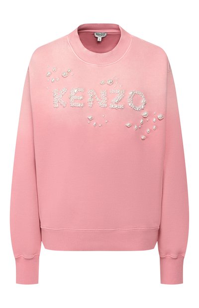 На создание весенне-летней коллекции Кэрол Лим и Умберто Леона вдохновили образы японских ныряльщиц ама. Это отразилось в декоре пастельно-розового свитшота, окрашенного в технике деграде: спереди модель украсили крупным логотипом из стилизованных под жемчужины перламутровых бусин. Мастера марки, основанной Кензо Такада, выполнили изделие из мягкого хлопкового трикотажа.