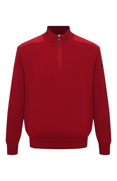 Красный джемпер с воротником-стойкой — простой способ ввести яркий цвет в повседневный гардероб. Для создания модели из весенне-летней коллекции использовали мягкую шерсть тасманских мериносов, которая считается одной из самых упругих и не впитывает посторонние запахи. Входящие в состав волокна акрила делают пряжу прочнее.