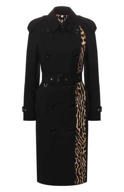 Одну из главных ролей в круизной коллекции сыграла одежда из материалов с анималистическими принтами. Подкладка с леопардовым узором разнообразила и знаковый для марки, основанной Томасом Берберри, тренч. Этот коричневый текстиль эффектно оттеняет черный хлопковый габардин. Съемный пояс поможет сформировать приталенный силуэт.