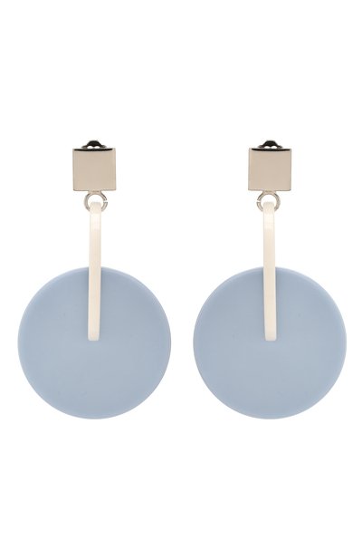 Клипсы с двухъярусными подвесками в виде бело-голубых дисков подружатся с разными вещами, будь то коктейльное платье или лаконичный повседневный наряд. Для производства основания мастера использовали серебристый ювелирный сплав, а подвески выполнили из почти невесомой эпоксидной смолы.
