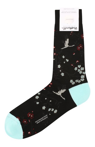 Черные высокие носки с контрастным растительным узором могут сыграть в образе первую скрипку: их можно надеть и с лоферами, и с кроссовками. Но внешний вид не единственное достоинство белья. Изделие сшили из тонкого трикотажа. За базы в нем взяли дышащий хлопок, а чтобы вещь прослужила долго, в составе предусмотрели нейлон.