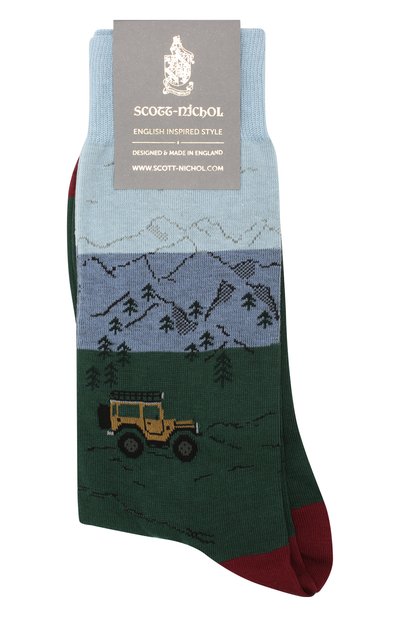 Мастера марки использовали для создания высоких носков мягкий тонкий хлопок. Скрученные особым образом волокна и добавление нейлона делают такой аксессуар комфортным и прочным. Плоские кеттельные швы не натирают чувствительную кожу, а широкая эластичная манжета не пережимает сосуды. Пейзажный мотив на фоне широких цветных полос добавит образу расслабленности.