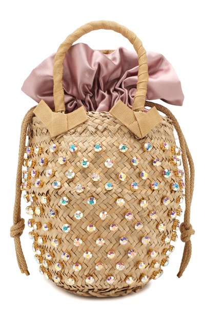 Мастера марки вручную сплели небольшую сумку Nina из тонкой неокрашенной соломы. Внутреннюю вставку выполнили из шелковистого текстиля лилового оттенка, в короткие ручки обтянули однотонной лентой гросгрейн. Задать правильное настроение аксессуару из весенне-летней коллекции помогла отделка мерцающими кристаллами. В комплекте — съемный плечевой ремень.
