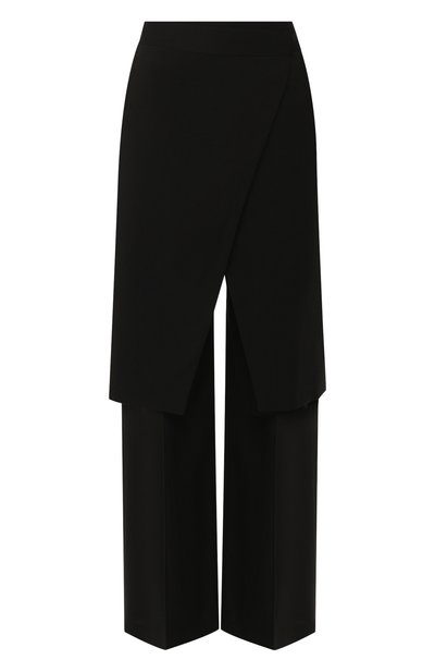 В весенне-летней коллекции бренда, основанного Мартином Маржелой, черные брюки со стрелками не выглядят как модель в классическом прочтении: их дополнили асимметричной вставкой, напоминающей фартук. Для создания вещи мастера марки использовали тонкую прочную шерсть. Материал практически не мнется, поэтому изделие не требует осо бенного ухода.