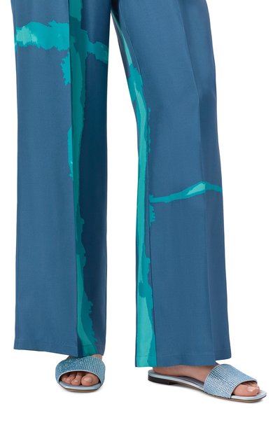 Шлепанцы BV Lido – вариация узнаваемых сабо с удлиненным квадратным мысом и союзкой, сплетенной в фирменной технике intrecciato из широких кожаных лент. Для изготовления модели из осенне-зимней коллекции Дэниел Ли выбрал мягкую наппу бледно-голубого оттенка (дизайнер назвал его Ice). Тонкую подошву дополнили фактурными вставками, чтобы ноги меньше скользили на гладком полу.