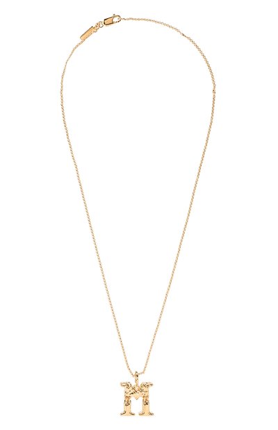 Вдохновившись поделками своего сына, Наташа Рамсей-Леви придала кулонам из линии Alphabet новое звучание: украшения словно выполнены из мятой алюминиевой фольги. Не стала исключением и эта модель в форме литеры «M». Для создания аксессуара на тонкой регулируемой цепочке мастера марки использовали легкую прочную латунь с золотистым покрытием, которое долго не потускнеет.