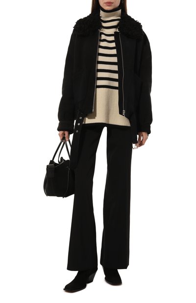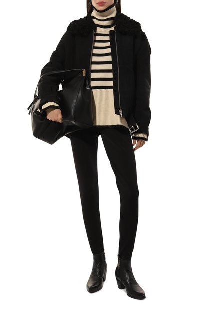 Ботинки Susanna выполнили из тонкой матовой наппы, которая считается особенно мягкой. Скошенный каблук, ремешки с массивными пряжками на подъеме и россыпь заклепок, образующих узор: дизайнер стилизовала обувь универсального черного цвета под казаки.