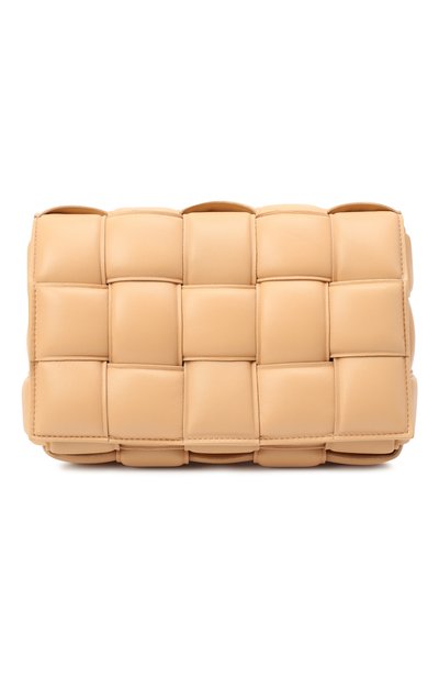 Благодаря спокойному бежевому цвету сумка Padded Cassette легко впишется в сложный образ, но при этом она не лишена индивидуальности за счет знакового плетения intrecciato. Модель выполнили из широких полос кожи наппа таким образом, что узор получился объемным. В аксессуар из весенне-летней коллекции поместятся кошелек, смартфон и ключи.