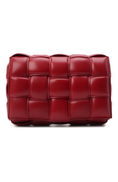 В осенне-зимней коллекции Дэниел Ли дополнил палитру сумок Padded Cassette оттенком спелой вишни. Аксессуар сплели в фирменной технике intrecciato, сформировав на его поверхности узнаваемый геометрический мотив. На создание модели дизайнера в свое время вдохновила обивка в салонах винтажных автомобилей, поэтому для ее изготовления вместо узких фетуччей он выбрал широкие объемные ленты из гладкой блестящей наппы. В изделие с регулируемым ремнем поместятся смартфон, кошелек и ключи.