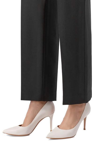 Джанвито Росси включил белые туфли Gianvito в классическую коллекцию. Мастера марки выполнили очищенную от всех лишних деталей модель на высокой шпильке и с зауженным мысом из мягкой прочной кожи с деликатным матовым блеском. Такая обувь поддержит настроение образа как с принтованными брюками, так и с лаконичным платьем.