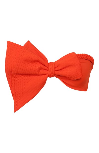 Бра-бандо выглядит эффектно не только за счет насыщенного оранжевого цвета, который бодрит не хуже цитрусового фрэша, но и за счет крупного декора в виде асимметричного банта. Для создания модели мастера марки использовали мягкий эластичный материал: он быстро сохнет и не блекнет на солнце и в морской воде.