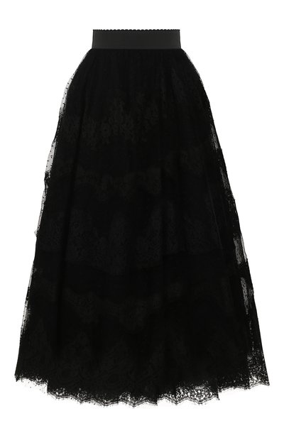 Доменико Дольче и Стефано Габбана знают, что праздничный образ во многом зависит от фактуры, поэтому для пошива пышной юбки дизайнеры выбрали тонкий полупрозрачный тюль, который эффектно ложится в складки, создавая необходимый объем. Модель из весенне-летней коллекции не пережимает талию благодаря широкому эластичному поясу.