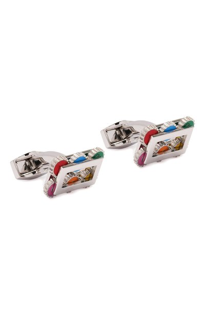Роберт Татеосян часто украшает изделия подвижными деталями. Не стали исключением и запонки с шестеренками, как у часового механизма. Аксессуар из латуни с прочным слоем родия станет яркой деталью в образе: мастера вручную покрыли его блестящей эмалью шести разных цветов. За счет поворотной застежки модель удобно надевать и снимать.