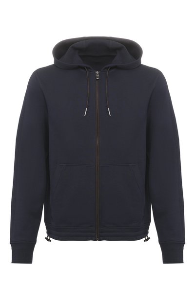 У толстовки из весенне-летней коллекции много достоинств, но основное неочевидно. Вертикальную молнию дополняют планки из прочного нубука, поэтому модель с двумя боковыми карманами долго будет выглядеть как новая. Для пошива темно-синего изделия мастера использовали мягкий хлоп ковый футер, который делает особенно теплым фактурная флисовая изнанка.