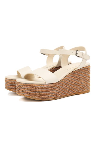 Брунелло Кучинелли включил в весенне-летнюю коллекцию бежевые босоножки. Для создания модели с широкой перемычкой мастера марки использовали мягкую матовую кожу. Высокую танкетку декорировали джутовым плетением и рядами знаковой для изделий бренда цепочки мониль.