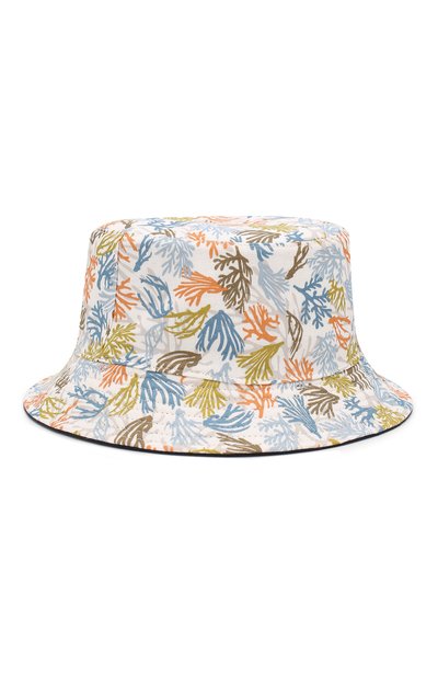 В панаме с узкими полями будет комфортно в жаркую погоду: все дело в материале. Для создания модели мастера марки использовали мягкий легкий лен, который хорошо пропускает воздух, впитывает и отводит влагу. За правильное настроение отвечает яркий разноцветный принт в виде кораллов.