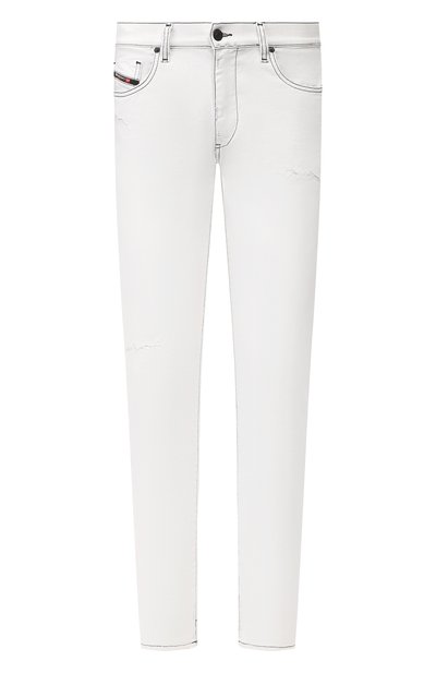 Белые зауженные джинсы из весенне-летней коллекции идеально садятся по фигуре за счет мягкого денима с включением стрейчевых волокон. Изделие прошили контрастными нитями, поэтому кажется, что его очертили черной тонкой полосой. Крупные прорехи, нарочито небрежно зашитые зигзагообразным швом, добавляют брюкам с классической посадкой расслабленное настроение.