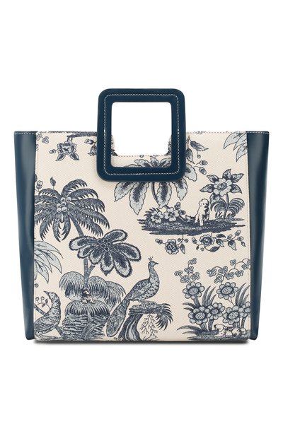 В сезоне весна-лето знаковая сумка Shirley получила новое звучание. Традиционные для этой модели прозрачные боковые панели заменили текстильными деталями с монохромным тропическим принтом. Аксессуар с отделкой из гладкой кожи дополнили съемным чехлом из такого же мягкого материала. У изделия жесткое дно поэтому найти внутри ключи или помаду не составит труда.