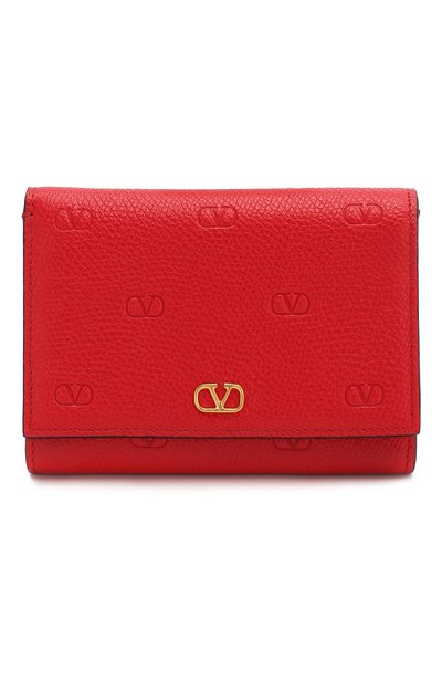 Портмоне насыщенного алого цвета мастера марки изготовили из прочной крупнозернистой кожи, которая не боится потертостей. Аксессуар закрывается широким клапаном на кнопку. Внутри – восемь слотов для пластиковых карт, открытые карманы и отделение на молнии. Тисненый мотив VSky, составленный из архивных эмблем VLogo рифмуется с миниатюрной золотистой деталью на передней панели.