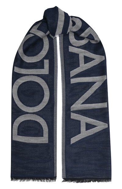 Для создания синего шарфа мастера бренда использовали мягкий тонкий хлопок. Его легкие волокна не раздражают кожу, но считаются довольно хрупкими, поэтому для прочности их смешали с нитями шелковистого модала. Изделие декорировали крупным жаккардовым логотипом марки.
