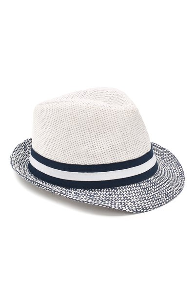 Для создания шляпы мастера марки использовали легкую невесомую солому. Такой аксессуар почти не ощущается на голове и не дает ей перегреться. Широкая полосатая лента будто подчеркивает переход от белой тульи к широким, слегка изогнутым полям неоднородного темно-синего цвета.