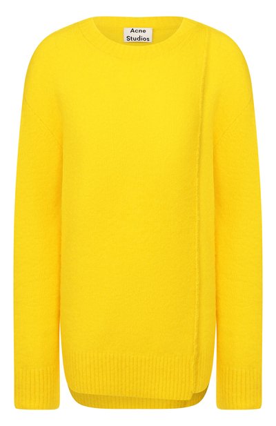 Желтый пуловер не только увеличивает яркость образа до максимума, но и поднимает настроение. Для создания модели из весенне-летней коллекции мастера марки исполь зовали тонкий пушистый материал. Нити шерсти альпака в составе делают его мягче и нежнее. Завершающий штрих в изделии поставили, задав асимметрию рельефным швом.