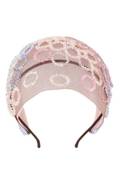 Разноцветный ободок поможет правильно расставить акценты в образе. Все дело в декоре: деталь из сетчатого текстиля расшили сверкающими кристаллами Swarovski. Основу аксессуара изготовили из легкого, но прочного металла и обтянули плотной тканью.
