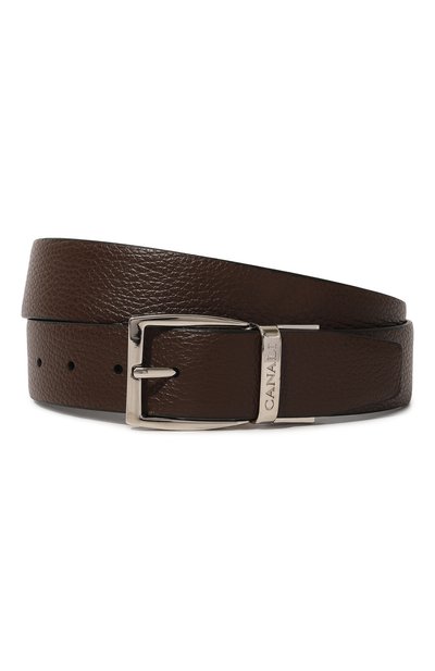 Для изготовления двустороннего регулируемого ремня мастера марки использовали мягкую кожу двух фактур: одну сторону изготовили из коричневой зерненой, другую — из гладкой черной. Прямоугольную пряжку и шлевку с выгравированным логотипом выполнили из прочного металла с серебристым покрытием, устойчивым к царапинам.