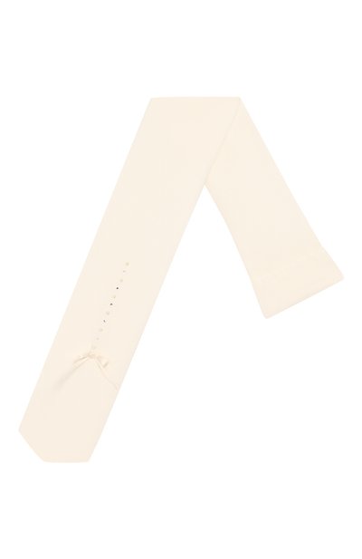 Бежевые колготки выполнили из мягкого эластичного хлопка. Тонкий эластичный материал, хорошо пропускает воздух, не деформируется и не садится после стирок. Изделие с широким поясом и плоскими швами декорировано объемным бархатным бантом, кристаллами и жемчугом.