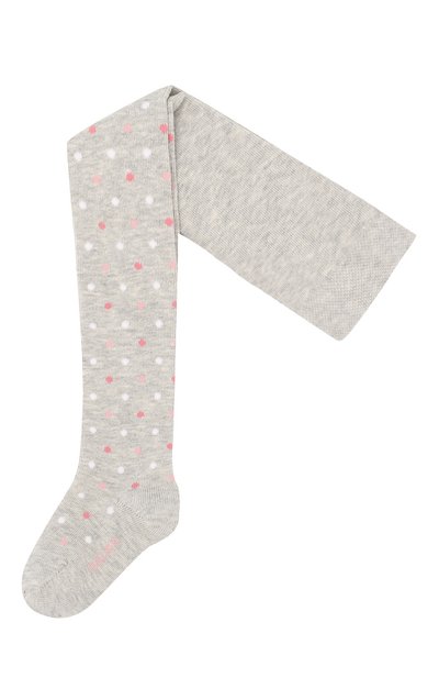 Светло-серые колготки с широким эластичным поясом и плоскими швами на мысе и пятке выполнены из меланжевого хлопкового трикотажа в разноцветный мелкий горох. Тонкий гипоаллергенный материал хорошо пропускает воздух и не пилингуется.